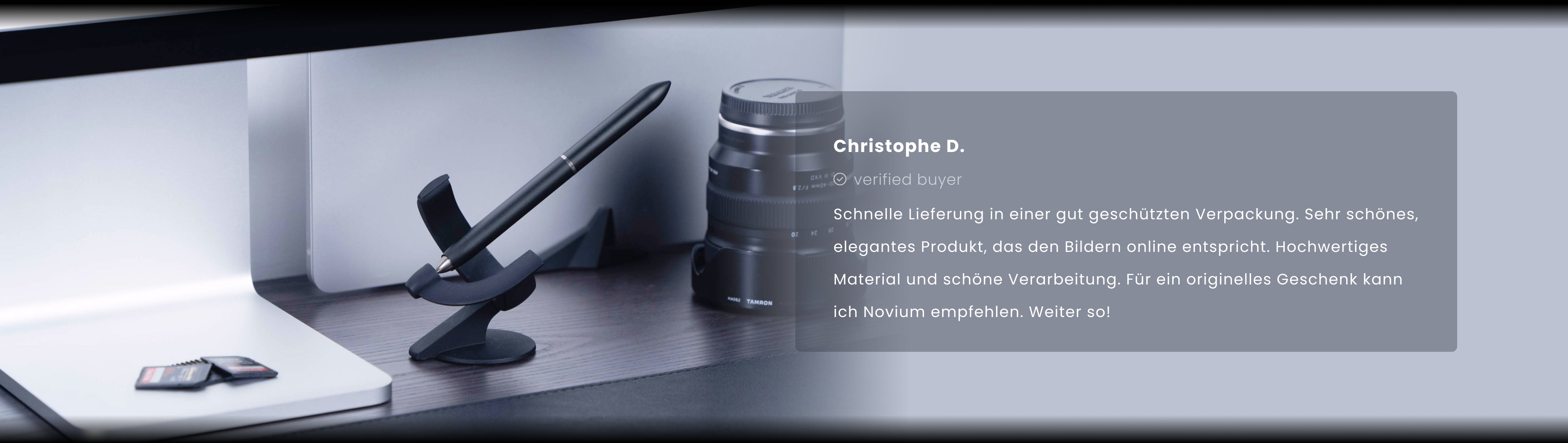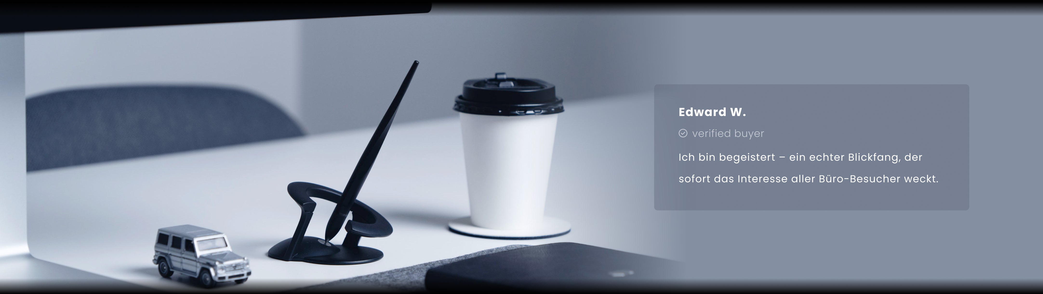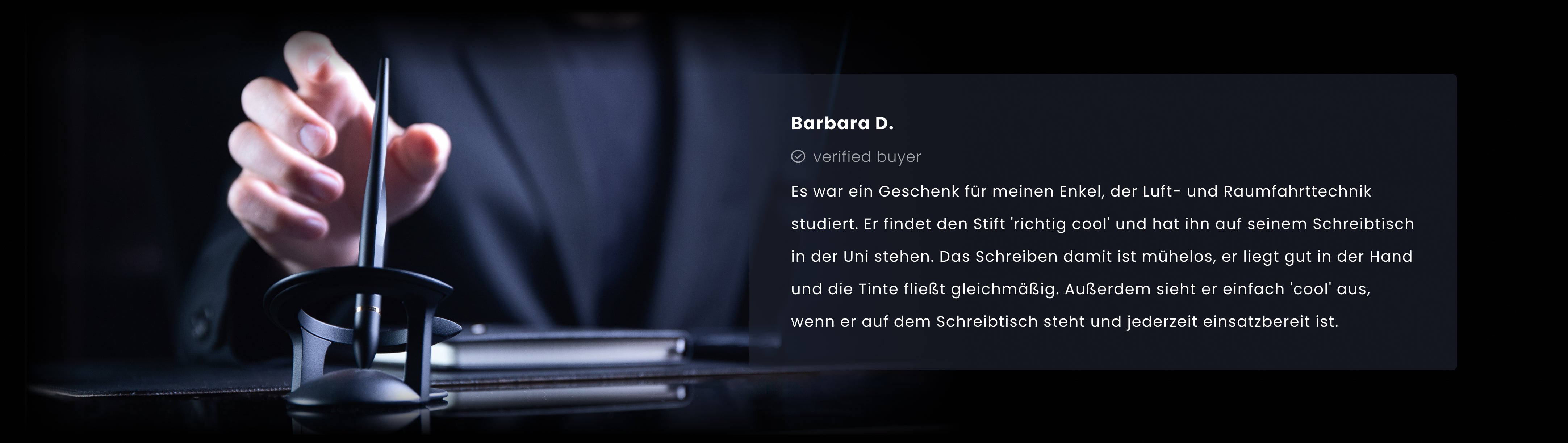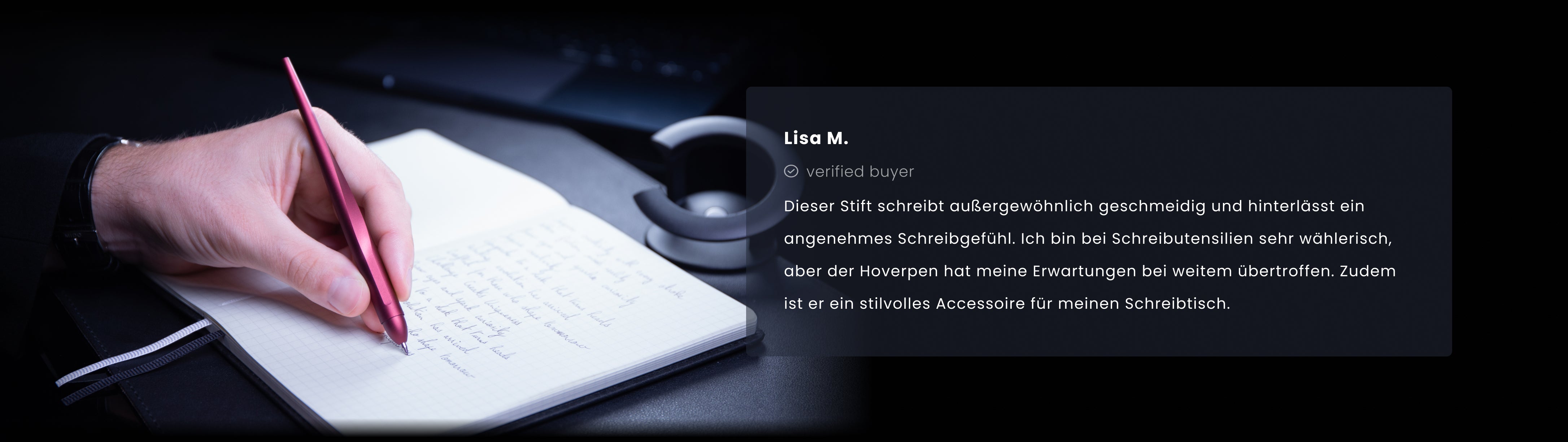 "Nützlich und zugleich magisch. Der Hoverpen Interstellar ist ein Kugelschreiber, der ohne Elektrizität schwebt. Dieses Kunststück wird durch Physik und Schwerkraft ermöglicht."