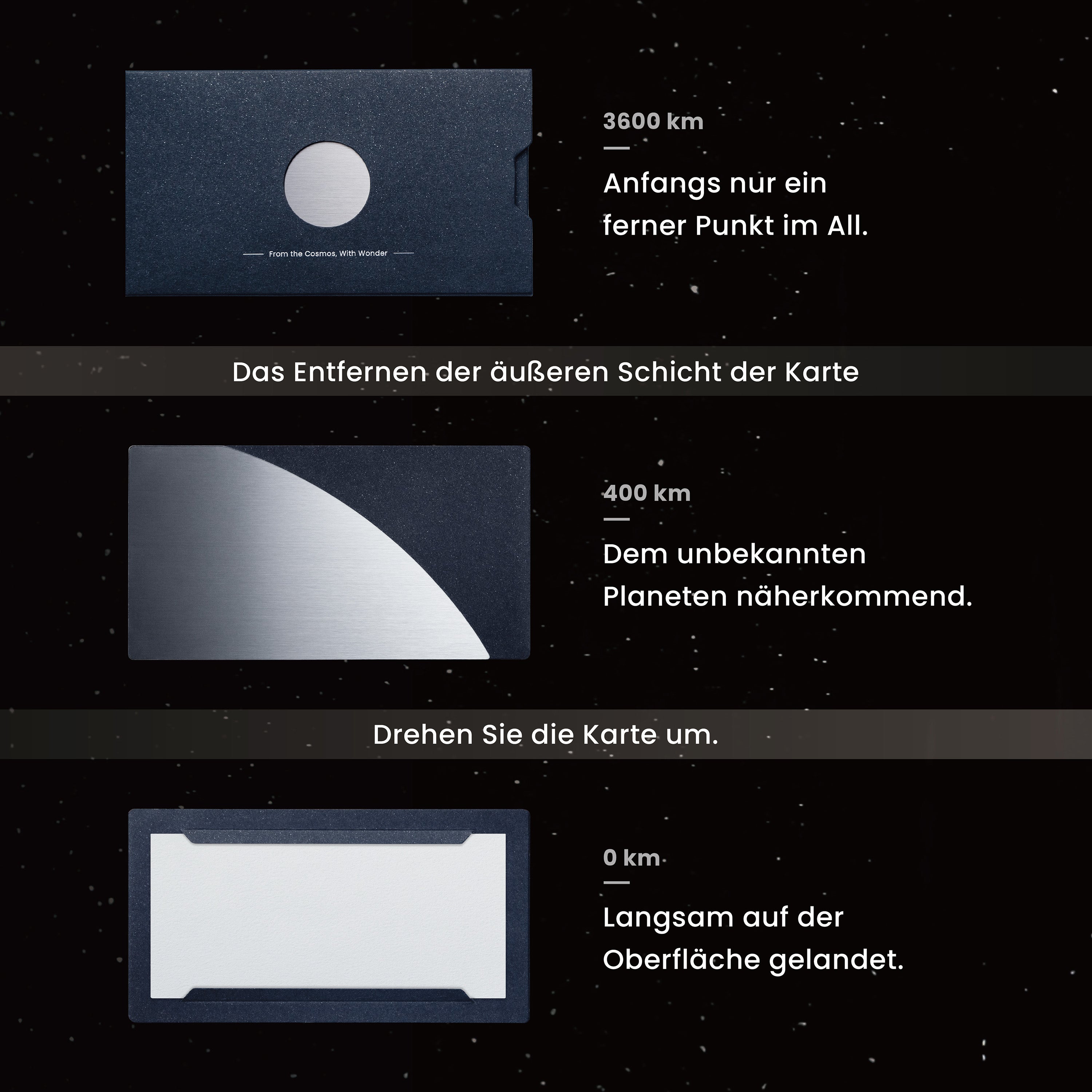 - Legen Sie die Karte in die planetarische Schutzhülle und das Kuvert, die perfekte Ergänzung zum Hoverpen für ein unvergessliches Geschenkerlebnis.