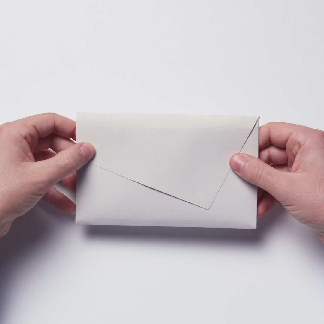 Schreiben Sie Ihre herzliche Nachricht auf edlem Papier und versenden Sie sie in einer einzigartigen, weltrauminspirierten Schutzhülle.