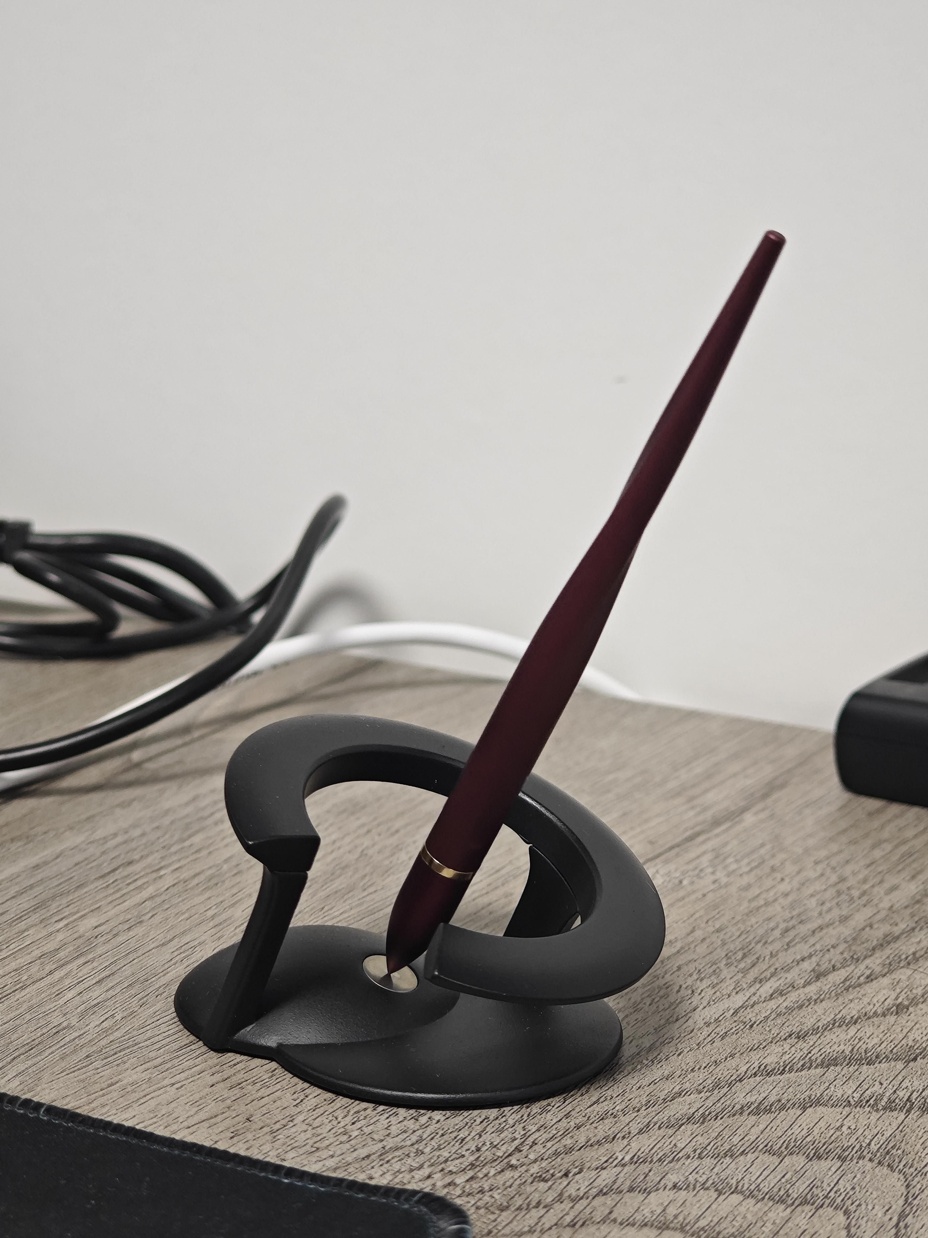"L'oggetto è molto originale. La penna scrive molto bene. Si posiziona facilmente sulla base magnetica. Nel complesso, è un oggetto originale e futuristico."