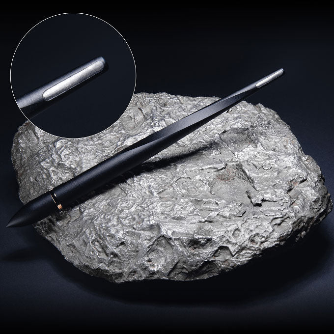 Il motivo Widmanstätten naturalmente presente, una struttura cristallina forgiata nello spazio nel corso di milioni di anni, rende ogni penna un vero pezzo unico nell’universo.