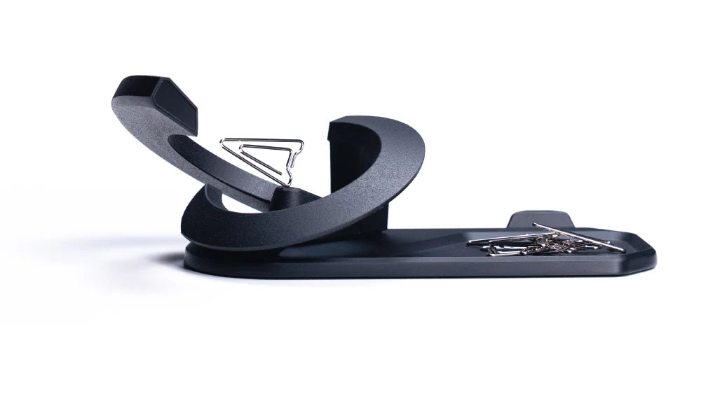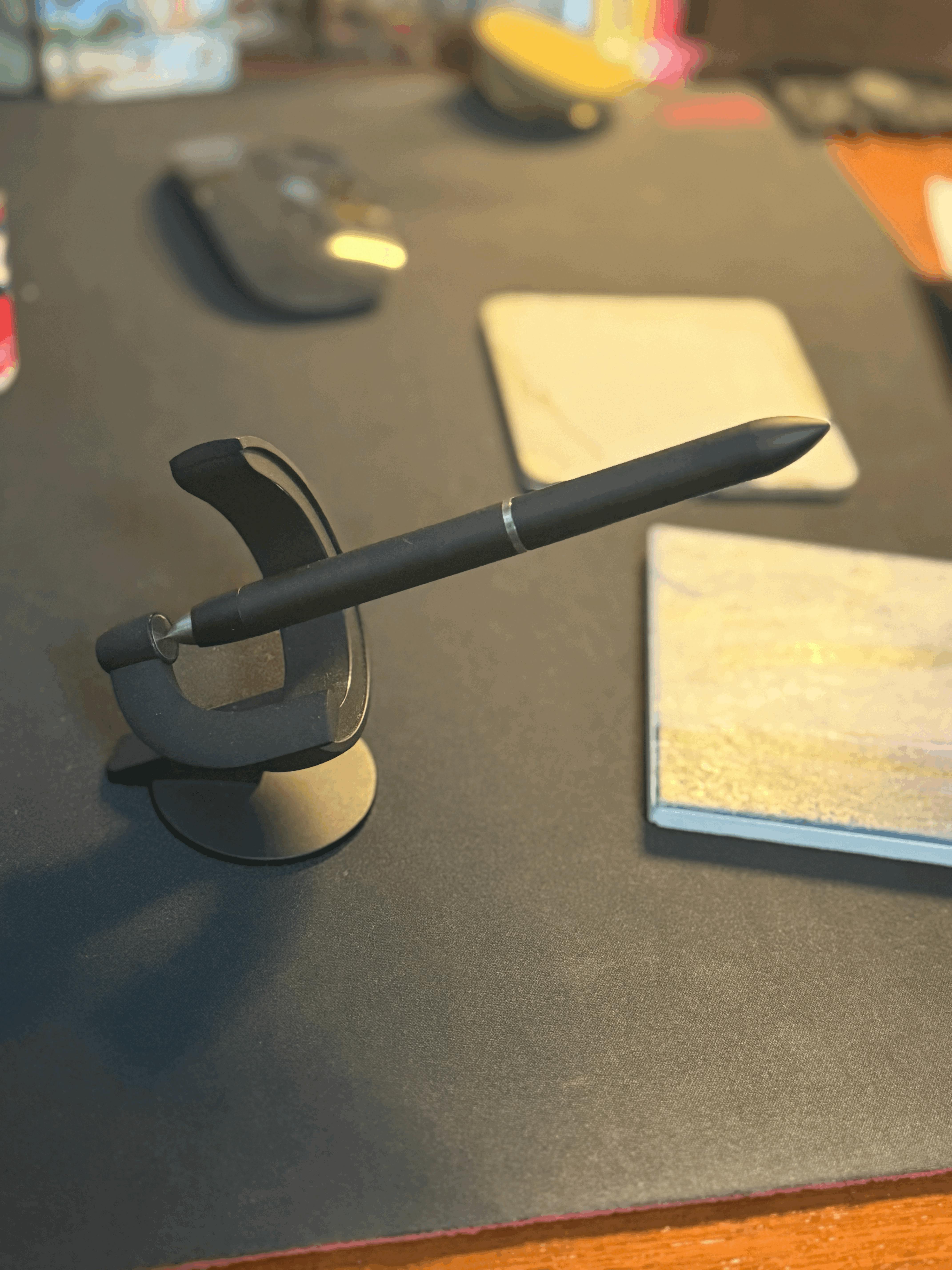 Every curve and angle of this futuristic fountain pen and its pedestal is precisely intentional, creating a functional art piece that transforms your space.